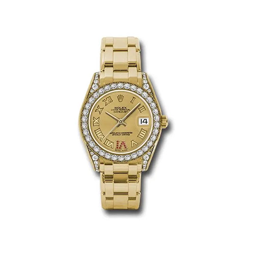 Rolex (previously enjoyed) Yellow Gold Datejust Pearlmaster 34 Watch - 34 Diamond Bezel - Champagne Ruby Roman Vi Roman Dial