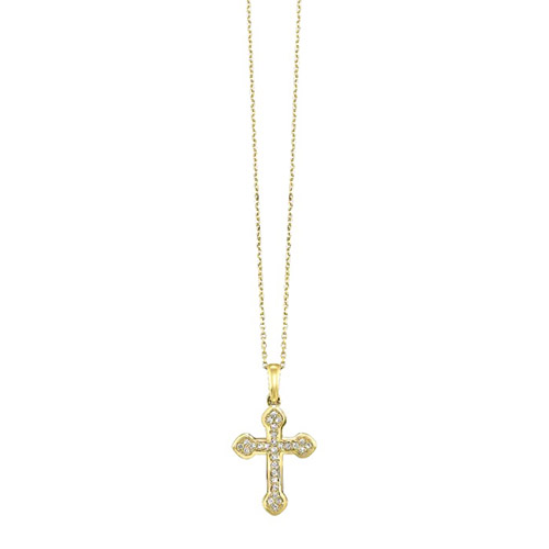 Classic Cross 14k Yellow Gold Diamond Pendant