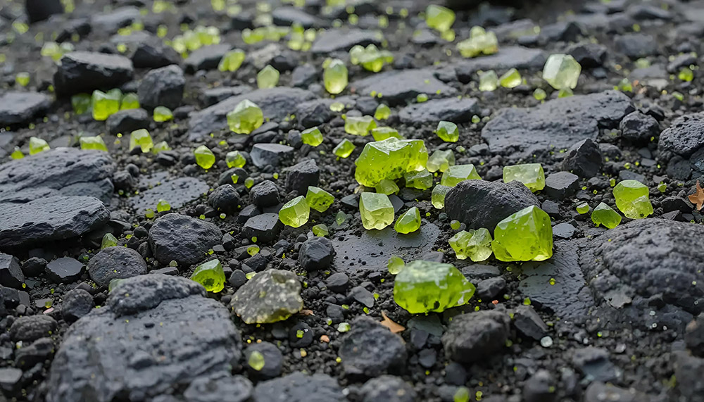 Most peridot forms deep in the Earth's mantle and is brought to the surface by volcanic activity. Some rare specimens are extraterrestrial, found in meteorites (but those are collectors' items, not jewelry-grade).