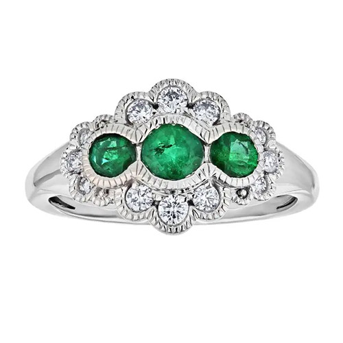 Emeralds have an aura of regalness that makes anyone feel like they were destined for the throne. If you're interested in a piece that will make your May birthstone lover feel like the center of attention—the king or queen of your world—then this diamond and emerald ring is the perfect fit. With 12 tantalizing diamonds that elegantly decorate the emerald trinity, the ring looks like a crown fit for royalty.