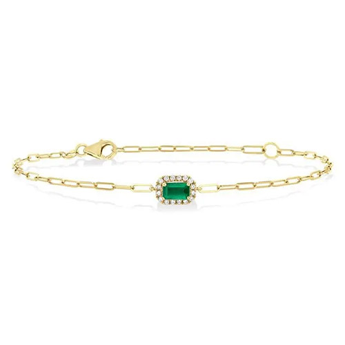 Emerald Shape Paper Clip Gemstone & Halo Diamond Bracelet