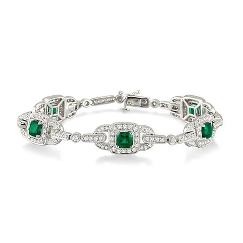 Looking for something as simple and sweet as a fresh May garden? You're in luck—this intricately crafted emerald and diamond bracelet captures that very feeling.