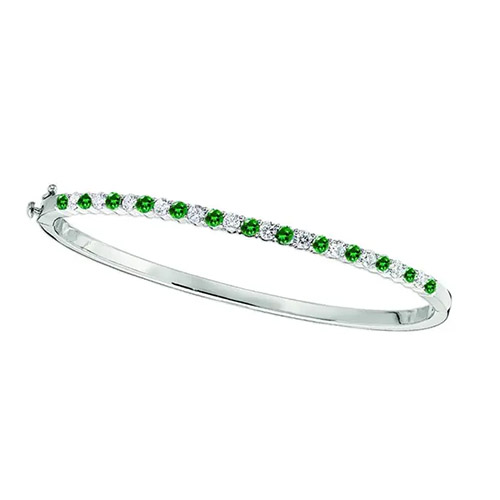 Featuring some of the most extravagant May birthstones, this piece is a bold declaration of your love for emeralds. Whether you're dressing up for a night out or adding flair to your everyday look, this bracelet lets everyone know that green is your color. Let everyone know you're proud to be an emerald birthstone lover and add this bracelet to your daily get-up.