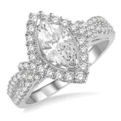 Sharp and elegant, like you or your loved one's personality, this ring epitomizes what it means to don a pear diamond ring. Its striking angles and points draw attention to your hands and the diamond ring. As an engagement ring, this masterpiece will remind others that you are certainly taken; there is no missing that eye-catching pear diamond perfection.