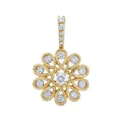 Diamond Round Scalloped Shaped Open Weave Milgrain Pendant