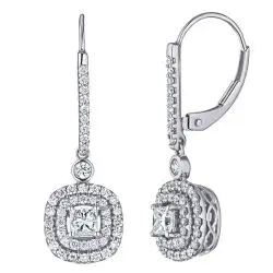 Diamond Cushion Cut Double Halo Leverback Earrings