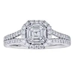 Diamond Asscher Shaped Composite Cluster Split Shank Engagement Ring