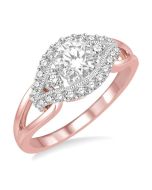 This awe-inspiring Diamond Bridal Set is luxurious in its style with 55 round cut diamonds. It comprises a beautiful 1/5 Ctw Diamond Wedding Band with 22 prong set round cut diamonds with milgrain finish and a stunning 3/4 Ctw Diamond Engagement Ring with 33 prong set round cut diamonds, which includes a 1/2 Ct prong set Round Cut Center Stone with milgrain finish and rhodium polish. This set is made in 14 karat Rose and White Gold. Total diamond weight is 1 Ctw.