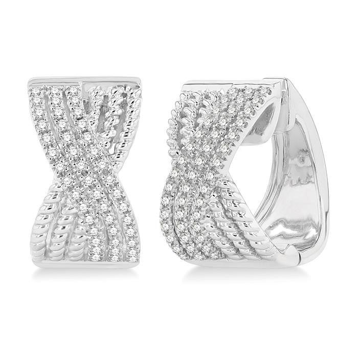 1/3 ctw Petite Wide Crisscross Rope and Round Cut Diamond Fashion Huggies in 14K White Gold