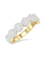 A gorgeous pair of Shine Bright diamond hoop earrings, these can make any woman fall in love with them instantly. Each of the earrings feature 14 circular mounts, the front facing 7 of which are embellished with sparkling round cut diamonds. The 7 mounts on each earring is adorned with an invisible set round cut diamond in the center, a total of 14 on both earrings. The center stone is haloed by 8 small invisible set round cut diamonds each, a total of 112 diamonds on both earrings together. Styled in 14 karat yellow and white gold, these earrings add panache to any ensemble. Total diamond weight is 1 1/2 CTW.