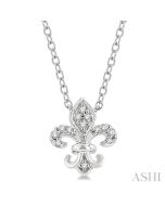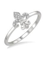 The Fleur De Lis symbol dates back centuries, but the most recent association with it is from France, where it is used in the Royal Coat of Arms. It literally translates from French as the 'Lily Flower'. While the flower has had different connotations at varied points of time and in different cultures, it is today considered a symbol of purity, perfection, power, strength and in the Christian sense, the Holy Trinity. The symbolic nature of this Fleur De Lis earring makes it an ideal buy. It is chic and attractively decorated with 22 pave set round cut diamonds. The Petite stud earring is styled in 10 karat white gold. The total diamond weight is 1/20 CTW.