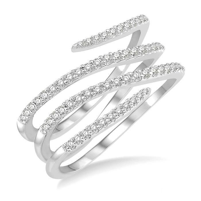 1/3 Ctw Triple Spiral Open-End Round Cut Diamond Fashion Ring in 14K White Gold