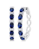 A sophisticated precious Sapphire and diamond bracelet, this is for the lady of style. Its gorgeous layout provides a richness that makes it classy and another woman's envy. The bracelet features closely knit links, with Sapphires and diamonds decorating them. There are 33 oval cut 4x3 MM Sapphires embellishing the bracelet, with 2 each, total 66, prong set round cut diamonds between the Sapphires. A push-release open box clasp completes the bracelet. The precious bracelet is fashioned in a rhodium finish 14 karat white gold. The total diamond weight is 1/3 Ctw.