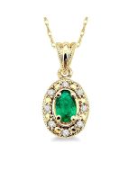 This elegant Emerald and Diamond Earrings express your love for your sweet heart. These stunning earrings are crafted in 14 karat yellow gold and ornamented with oval shaped emeralds and 12 single cut diamonds beautifully prong and pave set. Total diamond weight is 1/10 ctw and each emerald measures 4x3mm.
