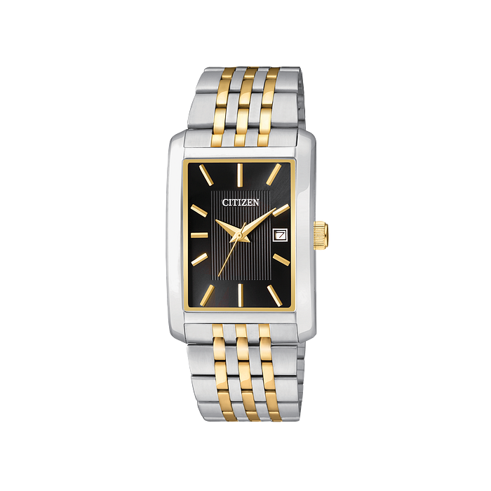 Citizen Men's Quartz Two-Tone SS Case and Bracelet with Black Dial and Date Feature