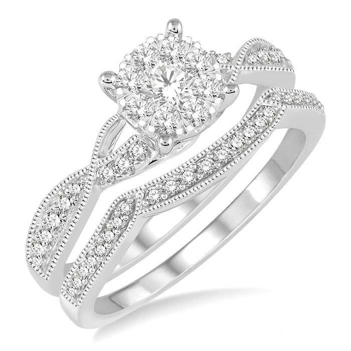 5/8 Ctw Round Cut Diamond Shine Bright Bridal Set with 1/2 Ctw Engagement Ring and 1/6 Ctw Wedding Band in 14K White Gold