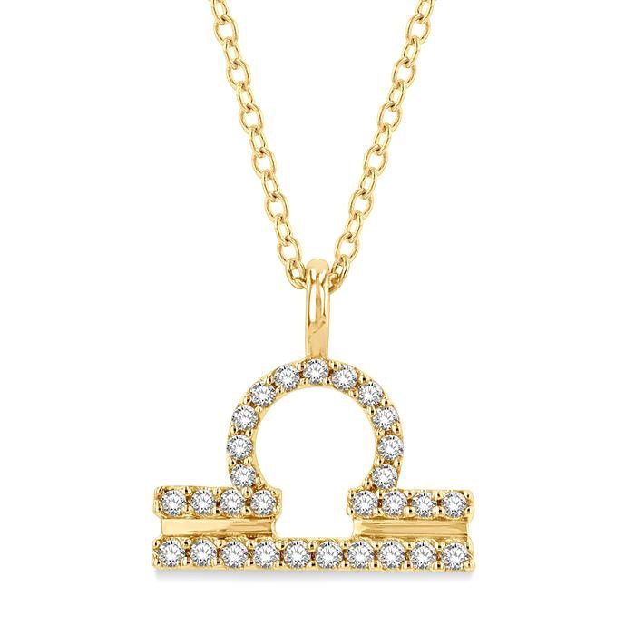 Couture Juniper Libra Zodiac Diamond Pendant pairs 14K Yellow Gold with Diamond in a Pendant. Crafted for everyday elegance, it 1/8 CTW with clean lines. A versatile piece that layers well and suits Pendant looks. Finished with attentive polishing.