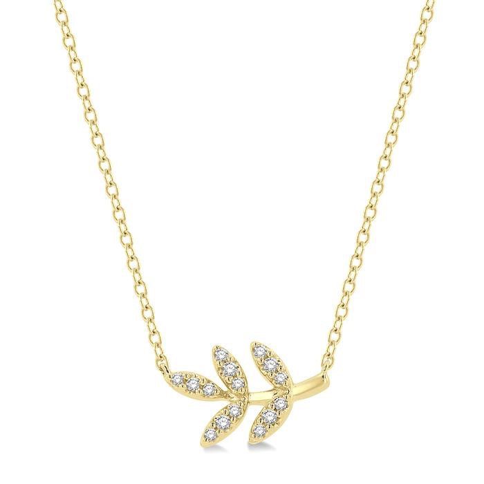 1/10 CTW Leaf Motif Round Cut Diamond Petite Fashion Pendant With Chain in 10K Yellow Gold