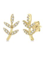 The Petite collection offers a remarkable assemblage of small, delicate, and stylish jewelry that are a must-have in your jewelry case. This lovely diamond fashion pendant is one of them. It features a 5-leaf motif on a stem, with the leaves decorated with round cut diamonds, while the stem is plain gold. There is a total of 15 prong set round cut diamonds embellishing the leaves, 3 each on each leaf. An Cat chain attaches to the pendant for unhindered use. Both the Cat chain and Petite diamond pendant are carved in 10 karat yellow gold. The total diamond weight is 1/10 CTW.