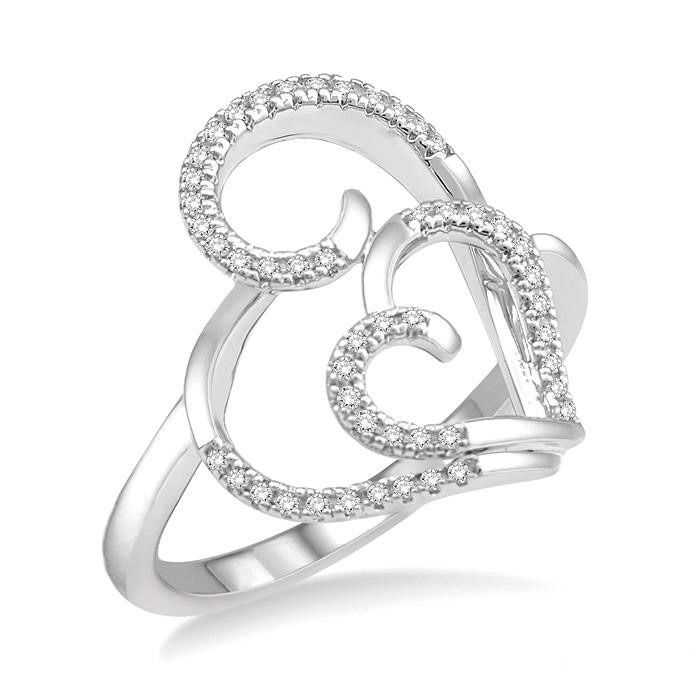 1/6 Ctw Twin Lattice Heart Round Cut Diamond Ladies Ring in 10K White Gold