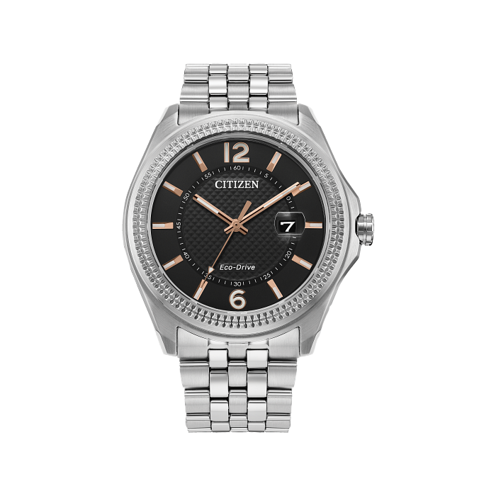 A classic timepiece is always in style in the latest addition to the Corso Classic collection. This must-have men’s watch is accentuated by a silver-tone stainless steel case and distinct coin edge bezel that holds a gray three-hand dial with date. The sleek stainless-steel bracelet band fastens with a fold over clasp with hidden push buttons. This Eco-Drive watch is sustainably powered by any light source, eliminating the need for a battery, and is water resistant up to 100 meters. The classic Corso timepiece by Citizen, where classic elegance and modern technology meet.