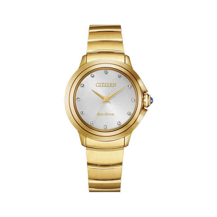 When it comes to aspirational watches for women, the Ladies Ceci is the ultimate luxury watch. This women’s diamond watch features 12 perfectly placed gems on the silver-white dial, paired with a delicate gold-tone stainless steel bracelet. And you’ll never need to worry about replacing a battery — this watch is sustainably powered by light with the exclusive Citizen Eco-Drive technology. Whether you’re looking for a dress watch for special events or a beautiful timepiece to wear every day, this watch will look great on every wrist and at every occasion.