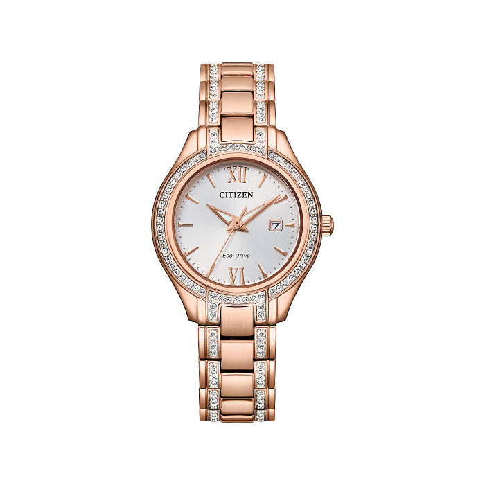 For a feminine timepiece that is sure to turn heads, the Ladies Silhouette Crystal is a beautiful watch for women that is the perfect accessory for every occasion. The pink-gold stainless steel bracelet features 48 genuine crystals, with the matching pink-gold stainless steel case sporting an additional 66 genuine crystals. The silver-white three-hand dial finishes the look, pulling the entire style together. On top of that, the watch is sustainably powered by light with the exclusive Citizen Eco-Drive technology. No matter what the occasion, or what fashion is called for, this timepiece will always be the perfect accessory.