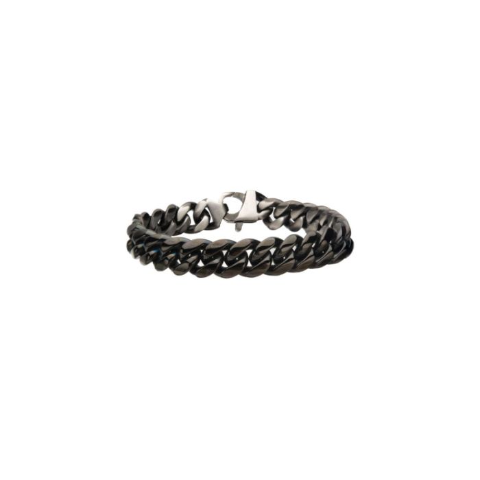 Men's Stainless Steel Matte/ Antiqued & Black Plated Reversible Big 12mm Curb Chain Colossi Bracelet. 8 1/2 inch long.