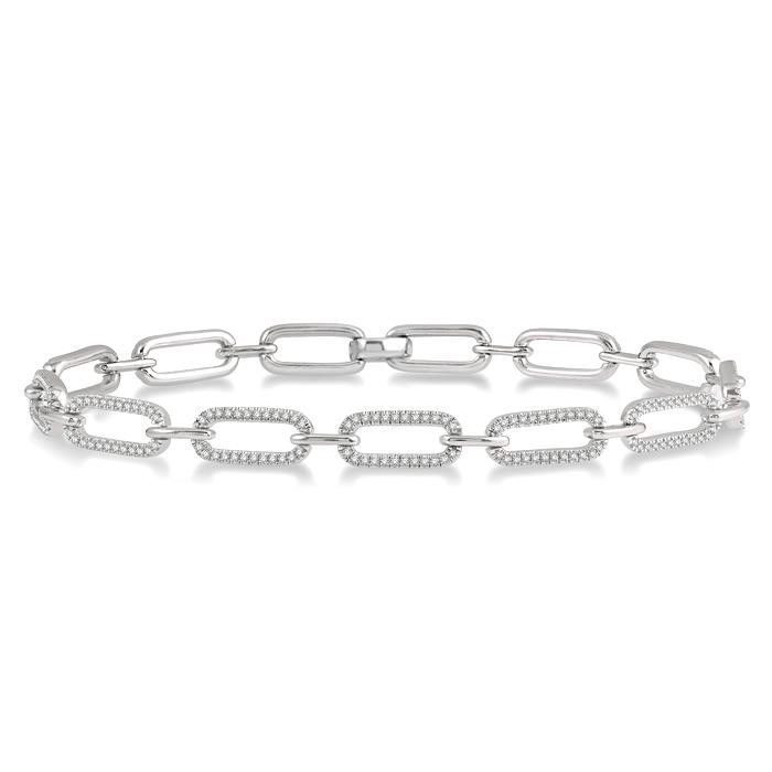 1 Ctw Round Cut Diamond Paperclip Bracelet in 14K White Gold